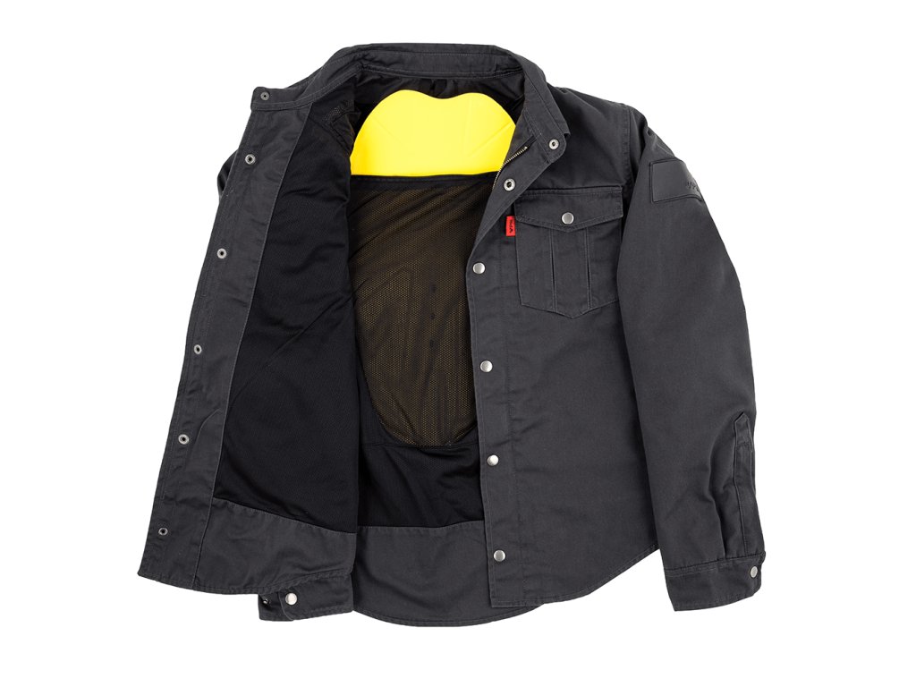 Bundo-košile na motorku. Exponovaná místa jsou zesílena kevlarovým polyamidem a chrániči z viskózně elastické pěny s vysokými absorpčními hodnotami rázové energie. Střih SLIM rozpínací košile. Ideální použití pro městský styl ježdění. Doplňuje oblibu kevlarových jeansů. Chrániče lze jednoduše vyjmout, tím se rozšiřuje využitelnost i na běžné denní aktivity.