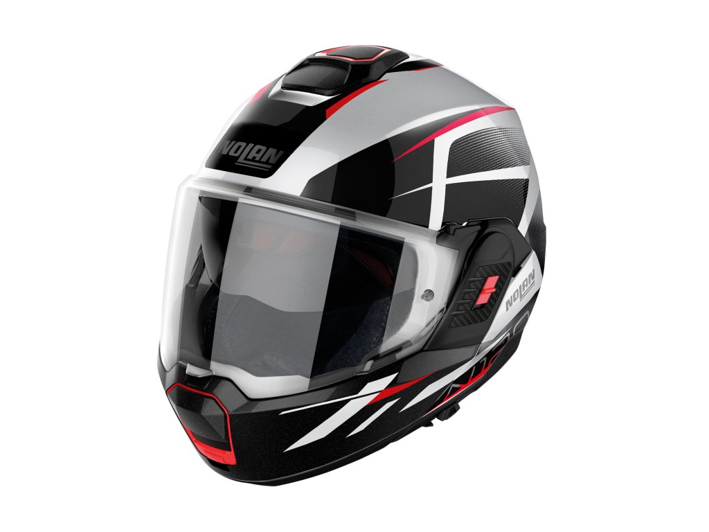 Pozvedněte své zážitky z cest díky bezkonkurenční funkčnosti, pohodlí, bezpečnosti a stylu překlopných helem NOLAN. Dual Action Nejbezpečnější zabezpečení bradové části výklopné helmy na trhu. Snadné a bezpečné. Je umístěn ve střední části chrániče brady a umožňuje snadné otevírání jednou rukou. Mechanismus otevření Dual Action snižuje riziko náhodného otevření: otevření může být provedeno pouze při použití první uvolňovací páčky (nebo bezpečnostního zámku) a poté aktivace druhé páčky.