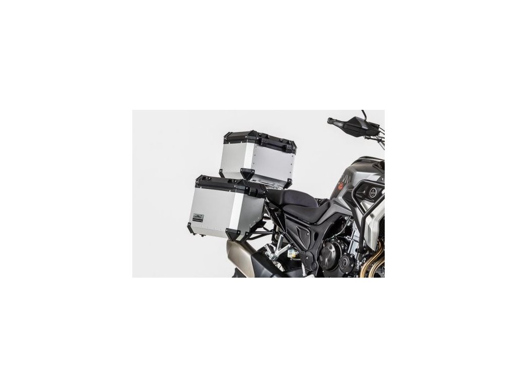 Sada obsahuje levý a pravý hliníkový kufr, hliníkový topcase a potřebnou montáž.
